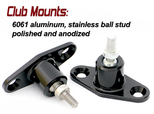 Also milled from 6061 aluminum then polished and anodized, Club Mounts are impressively strong and light. Racing is about speed but we also value presentation, and we're proud of the quality and presentation of our Club Mounts.